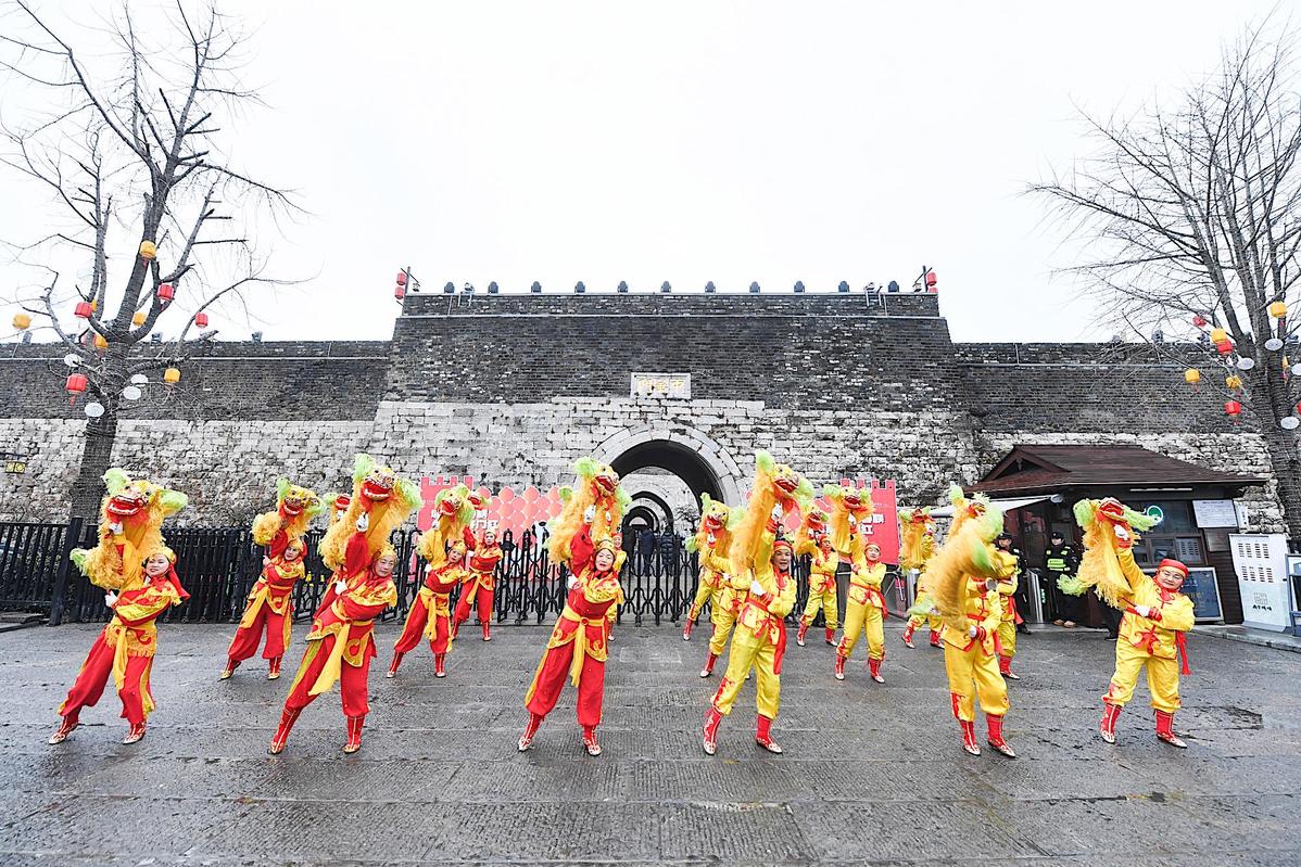 在揭聯(lián)儀式現(xiàn)場,與年味相關(guān)的非遺代表項目琳瑯滿目。在中華門北廣場,省級非遺項目——手獅舞正在上演;南廣場上,市級非遺項目——麒麟獻瑞引來陣陣喝彩。在中華門甕城里,還有金陵刻經(jīng)、燈彩、剪紙、絨花、泥人、繩結(jié)、布藝、糖畫等多項非遺展示,構(gòu)成一幅流動的民俗畫卷,濃郁年味撲面而來。