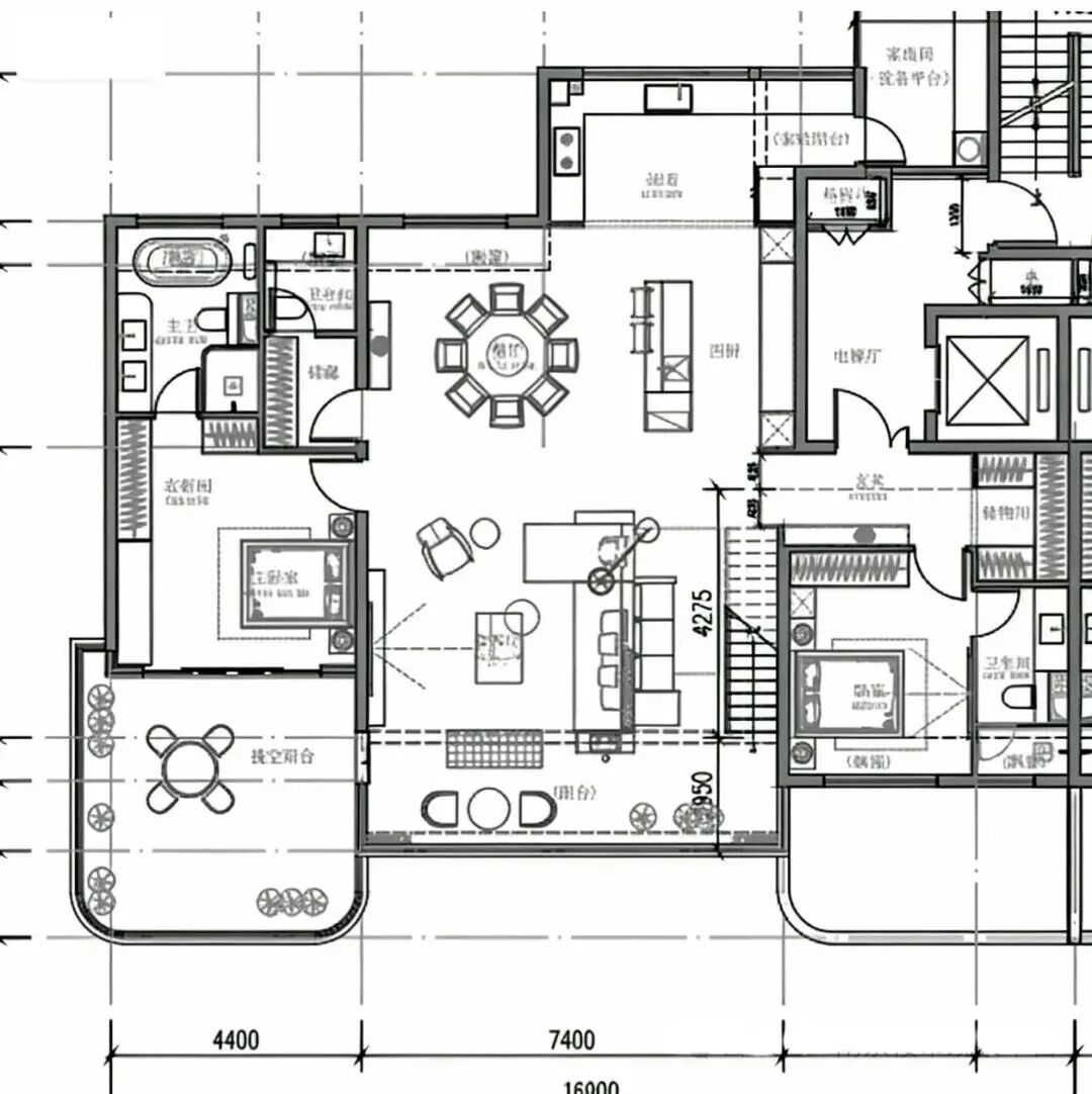 建面約185㎡戶型雙套房三衛(wèi)設(shè)計(jì)