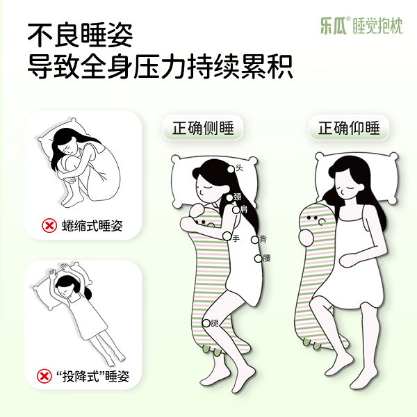 在睡眠用品市場長期被床墊、枕頭等傳統(tǒng)品類占據(jù)的背景下,抱枕更多被視為情緒安撫物而非功能性產(chǎn)品,作為“玩偶”的價值遠大于其功能性價值,而FUNMELON樂瓜的突破,始于一個深刻的洞察:現(xiàn)代人的睡眠問題,遠不止于情緒本身,不良睡姿導致的全身壓力分布不均、脊柱偏移、腰背酸麻才是更深層的痛點?;诖?,F(xiàn)UNMELON樂瓜沒有選擇在傳統(tǒng)賽道上內(nèi)卷,而是率先提出了“一人雙枕,科學護睡”的顛覆性理念,將“睡覺抱枕”從一個可有可無的配套用品,提升為能與頭頸枕協(xié)同作戰(zhàn)呵護頭頸肩手腿腰背的“護睡系統(tǒng)”。