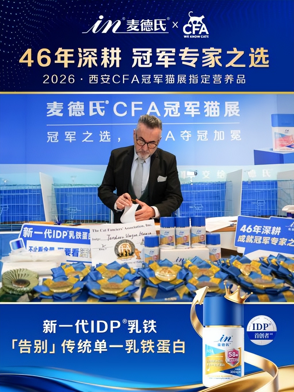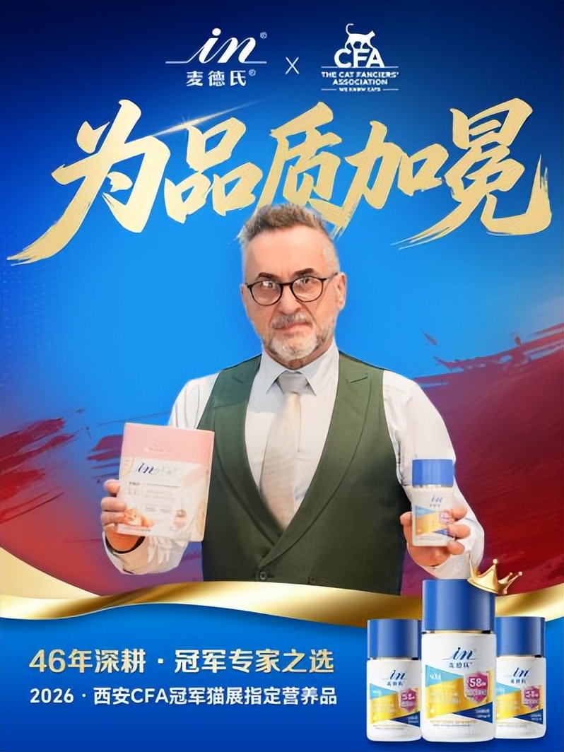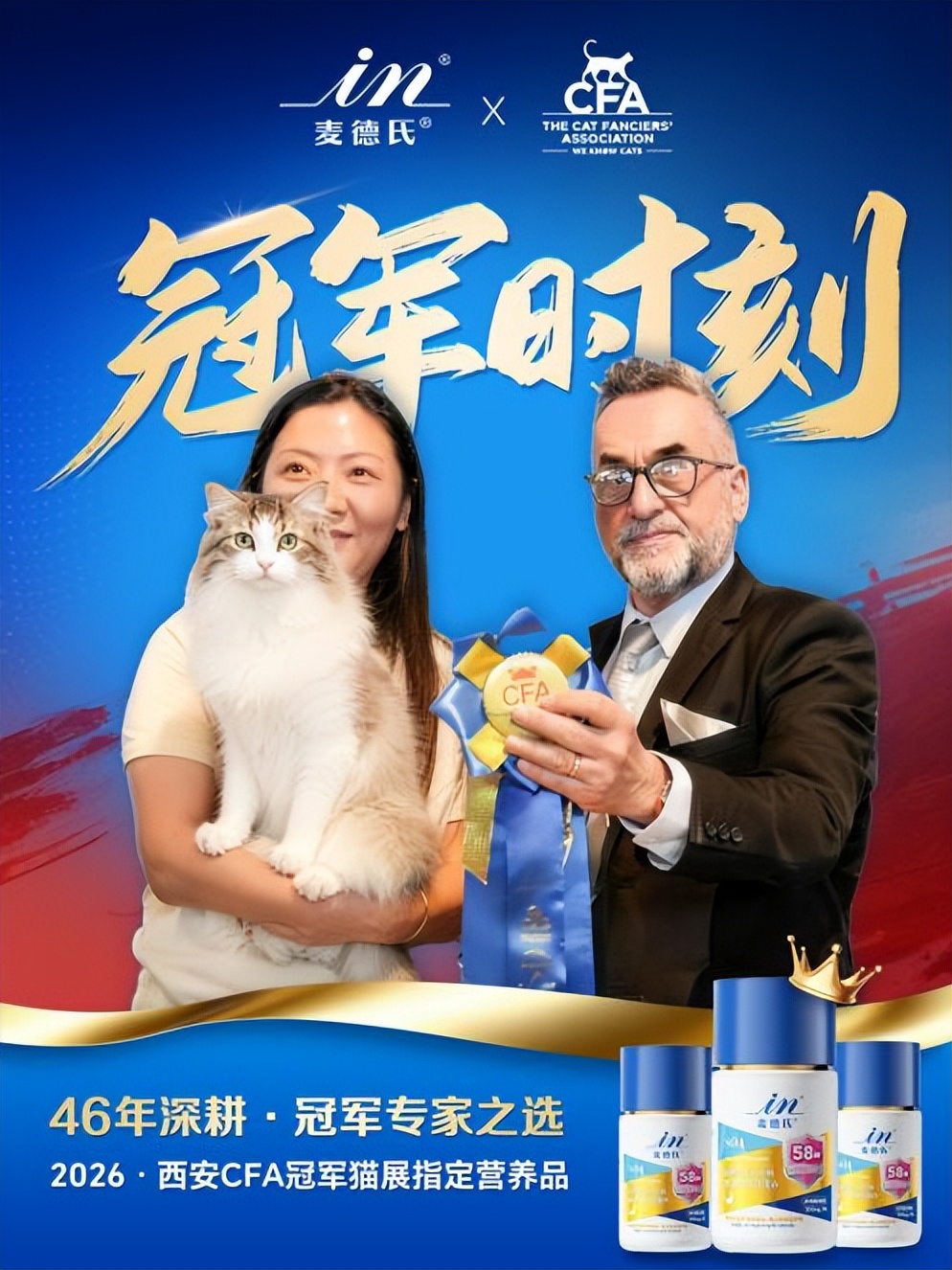 2026年1月,古都西安迎來了一場貓界殿堂級盛會——CFA(國際愛貓聯(lián)合會)國際貓展西安站。作為全球純種貓領(lǐng)域最具權(quán)威與影響力的賽事之一,CFA貓展不僅吸引了全國頂尖繁育者攜愛貓共赴盛會,更匯聚了資深養(yǎng)寵人士與萬千愛貓家庭的目光,堪稱行業(yè)風尚標與專業(yè)能力的試金石。在這場聚焦貓咪健康與完美的專業(yè)舞臺上,寵物營養(yǎng)健康品牌麥德氏以全程賽事營養(yǎng)支持伙伴的身份深度參與,憑借其46年專注寵物營養(yǎng)科技的深厚積淀,為賽事注入專業(yè)營養(yǎng)力量,詮釋了專業(yè)營養(yǎng)支持專業(yè)賽事的深刻內(nèi)涵。