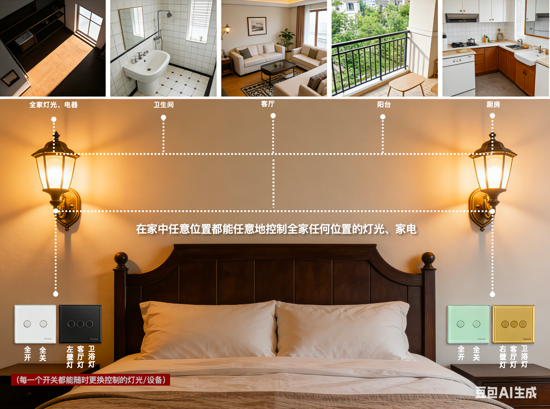 一臺(tái)開關(guān)可控制65535 個(gè)設(shè)備,單個(gè)設(shè)備可被10 個(gè)不同位置的開關(guān)同時(shí)控制;開關(guān)通過(guò)“學(xué)習(xí)”可以在任意位置控制任意設(shè)備,床左、床右、門口都可以總控全家的燈光、電器,也可以隨心“學(xué)習(xí)”控制不同的開關(guān),實(shí)現(xiàn)個(gè)性化情景;支持隨意貼便攜遙控,替代傳統(tǒng)開關(guān)的同時(shí)擴(kuò)展使用場(chǎng)景;不依賴Wi-Fi,無(wú)需主機(jī),無(wú)需布線,即裝即用;自帶能耗監(jiān)測(cè),幫助家庭實(shí)現(xiàn)精細(xì)化用電管理。