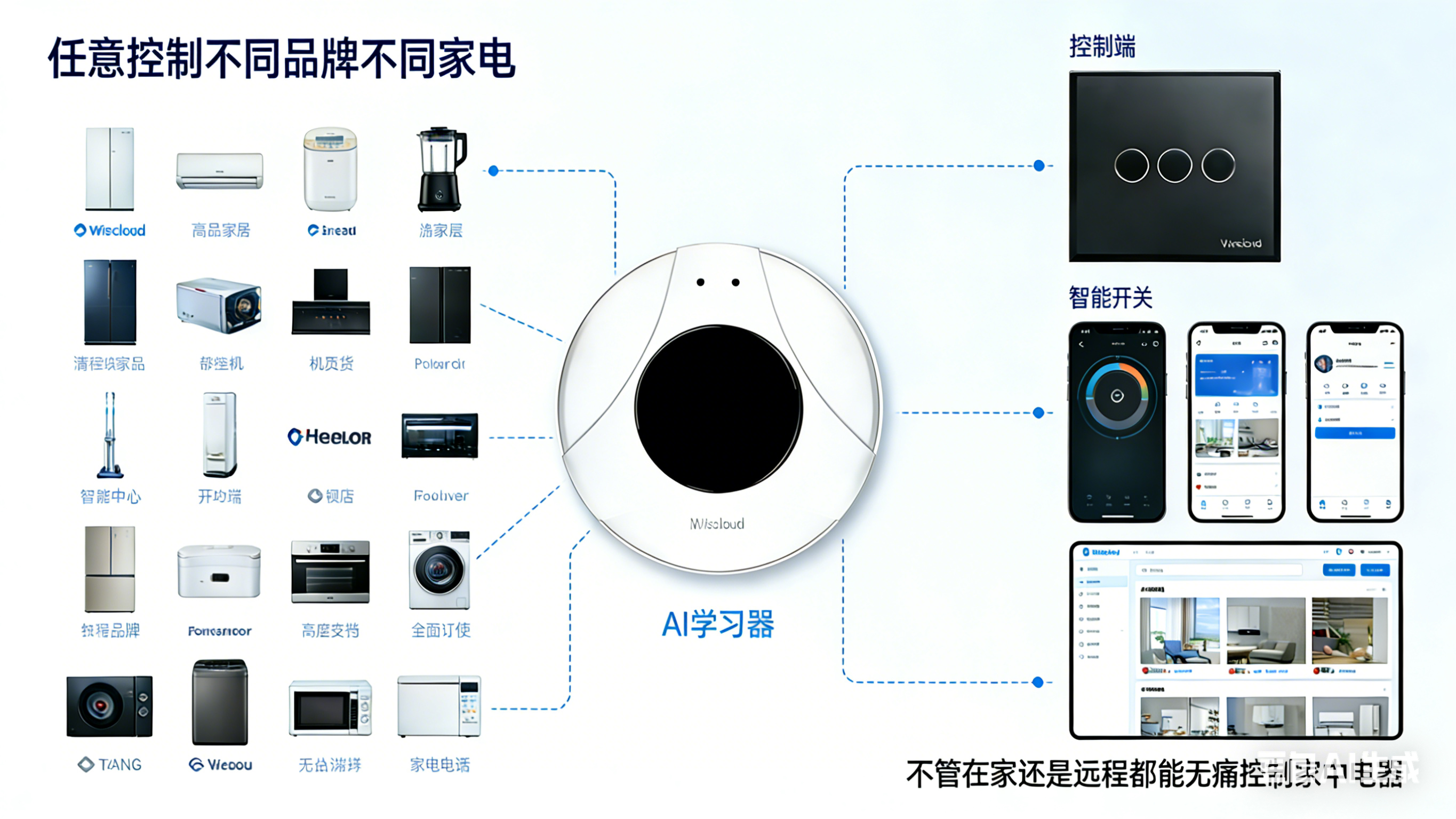 很多家庭已經(jīng)擁有了許多不同年代、不同品牌的電器,全換掉成本太高。星云天啟的“AI 學(xué)習(xí)器”就像一臺(tái)萬(wàn)能的“翻譯機(jī)”,讓老設(shè)備也能進(jìn)化成家的一部分 。