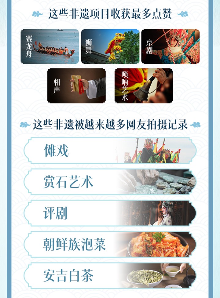 《報告》顯示,賽龍舟、獅舞、京劇、相聲、嗩吶藝術(shù)成為收獲最多點贊的非遺項目。其中一段由@東方姑娘(風(fēng)景航拍)拍攝的賽龍舟視頻,展現(xiàn)“倒車”“急剎”“漂移”等震撼場面,播放量超4億次。在濃烈的傳統(tǒng)文化氛圍下,越來越多網(wǎng)友拍攝和討論非遺,儺戲、賞石藝術(shù)、評劇、朝鮮族泡菜、安吉白茶等成為用戶投稿增長表現(xiàn)最好的非遺項目。#馮驥才李子柒董宇輝非遺賀歲 #潮汕女子英歌舞登場了 等非遺話題頻頻登上熱榜。
