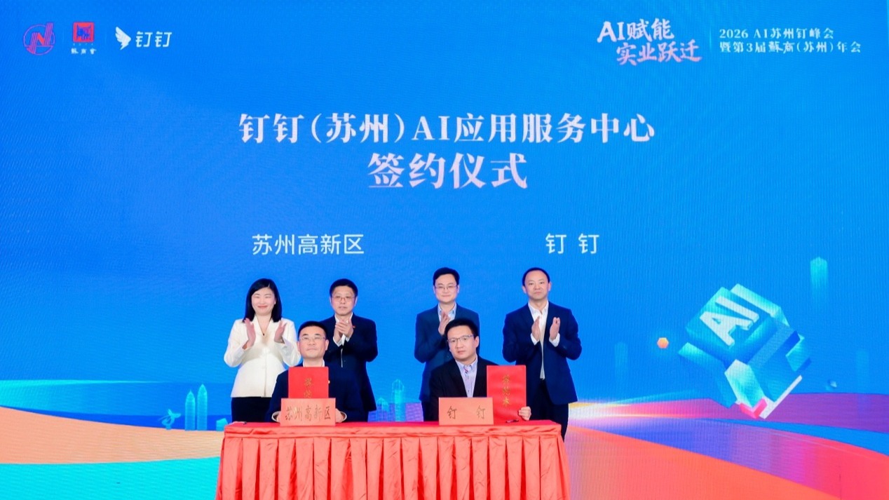 全國(guó)首個(gè)釘釘AI應(yīng)用服務(wù)中心簽約落戶蘇州高新區(qū)